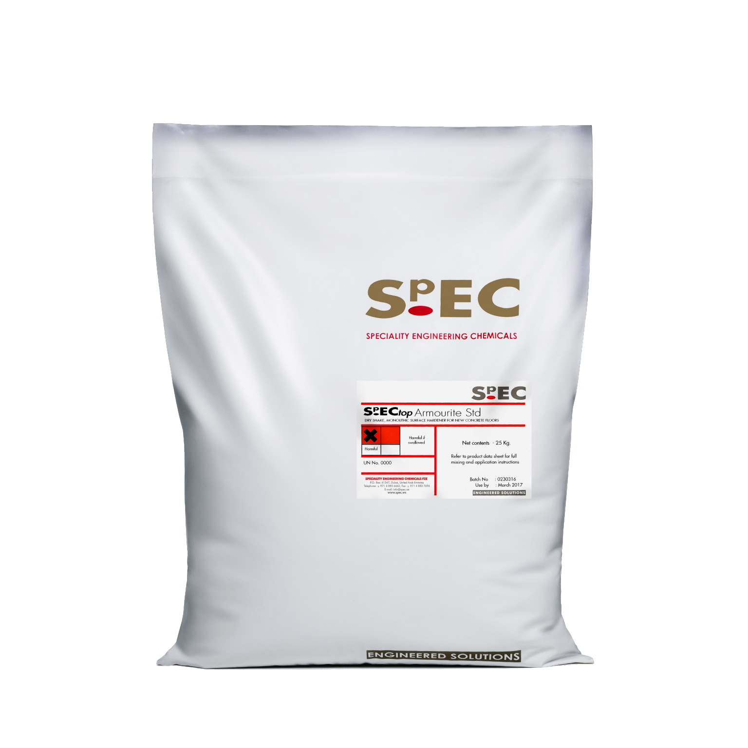 SpECtop Armourite Standard is supplied in 25kg bags and consists of graded synthetic mineral aggregate blended with Ordinary Portland cement and plasticisers.